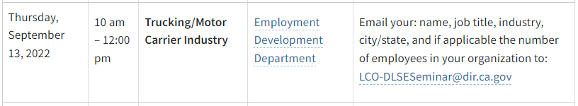 On September 13, 2022, the California Employment Development Department & The Department of Industrial Relations, Division of Labor Standards and Enforcement, will hold a webinar “to help employers comply with State Payroll Tax and Labor Laws.”